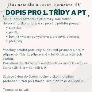 Informace pro první a přípravné třídy.