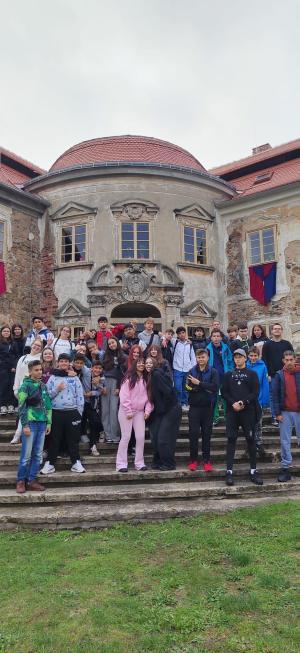 Žáci 8. A, 8. C a 9. A si prohlédli korunovační klenoty na zámku v Polákách.