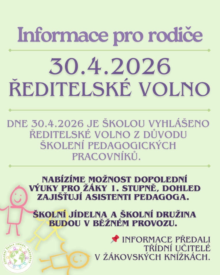 Upozornění: odhlášení či přihlášení obědů ve školní jídelně musí proběhnout vždy předešlý den do 14:00 hodin