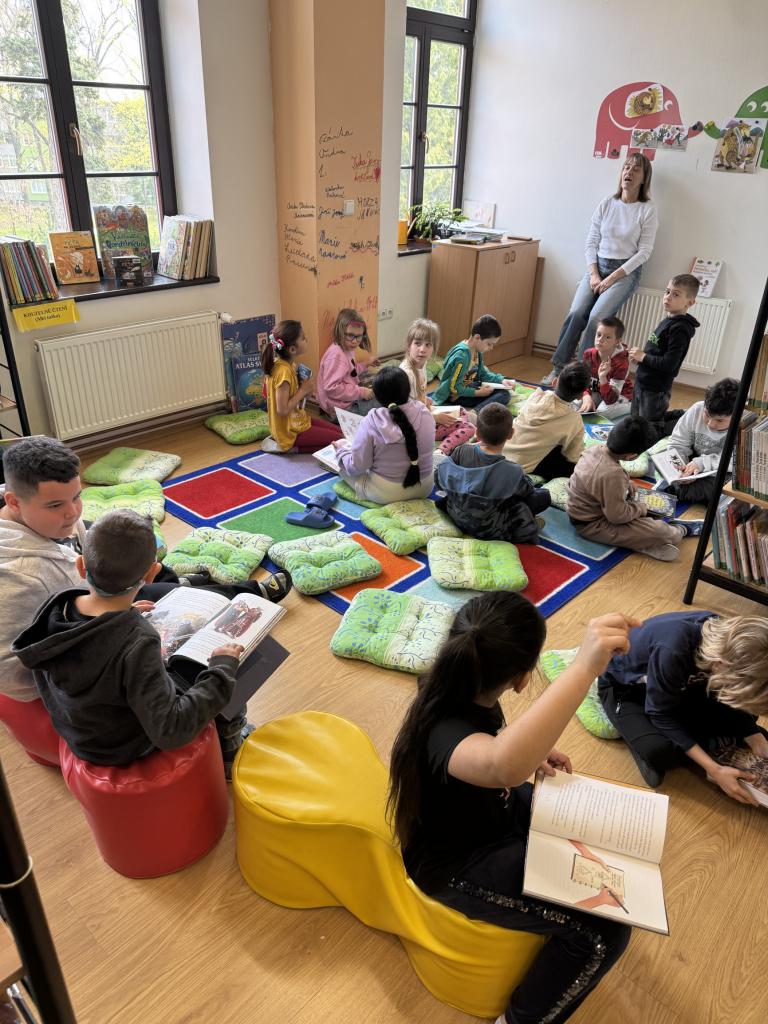 Žáci 1.B dnes navštívili jirkovskou knihovnu, kde se seznámili s jejím prostředím i základními pravidly.