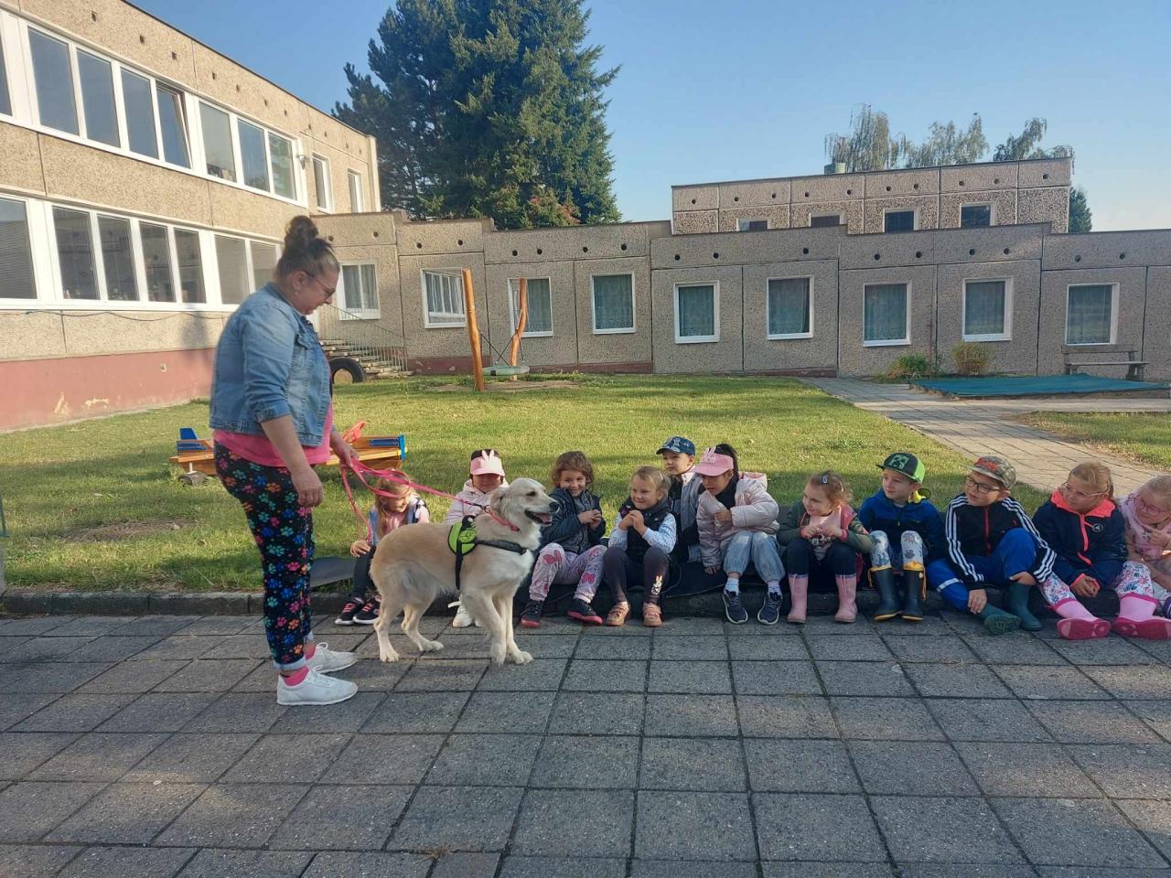Dnes naše asistenční fenka Hope navštívila v rámci výukového programu děti z MŠ Mašinka. Dětem byla představena a ukázána práce canisterapeutického a asistenčního psa. Povídali jsme si o tom, jak vypadá výcvik a výchova takového psa. Hope je právoplatným členem naší školy. Každé úterý tráví s dětmi i učiteli čas a to na volitelném předmětu arteterapie a canisterapie pro 7. a 8. ročník. Děti ve školce byly vzorné a s Hope si nejvíce užívaly hlazení a mazlení.