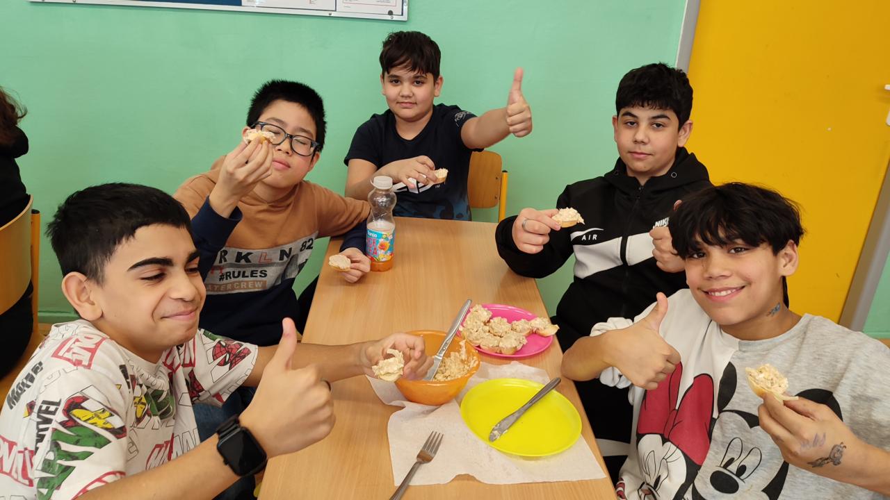 Třídy V.A a V.B. si v rámci výuky pracovních činností vyzkoušely přípravu tuňákové pomazánky. Práce nás moc bavila, pomazánky se povedly na jedničku!
