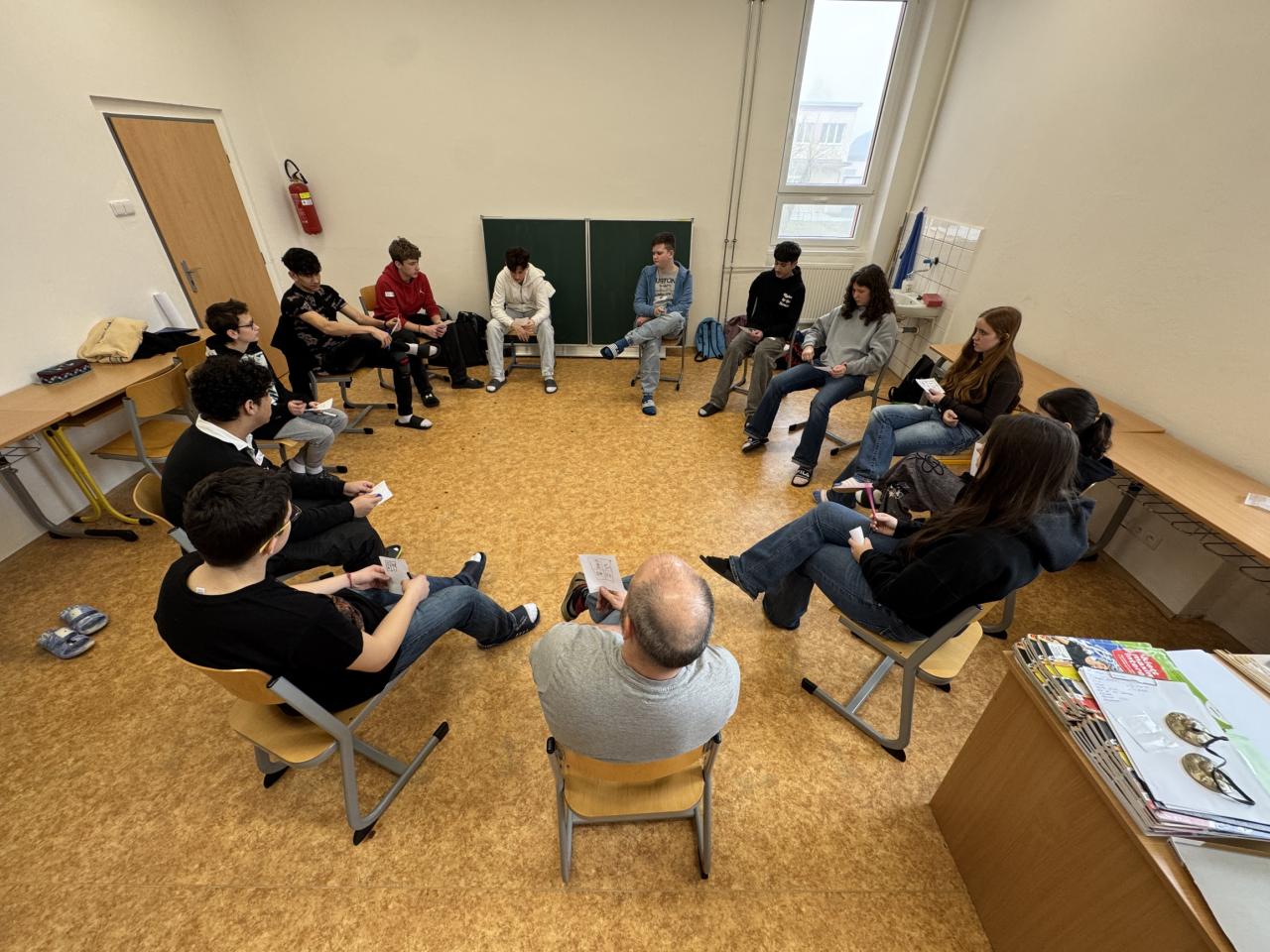 Dnešní dopoledne jsme jako žákovský parlament strávili s Petrem z CEDU. Společně jsme pracovali na stmelení našeho kolektivu formou her, otevřeně diskutovali a plánovali další kroky naší činnosti.