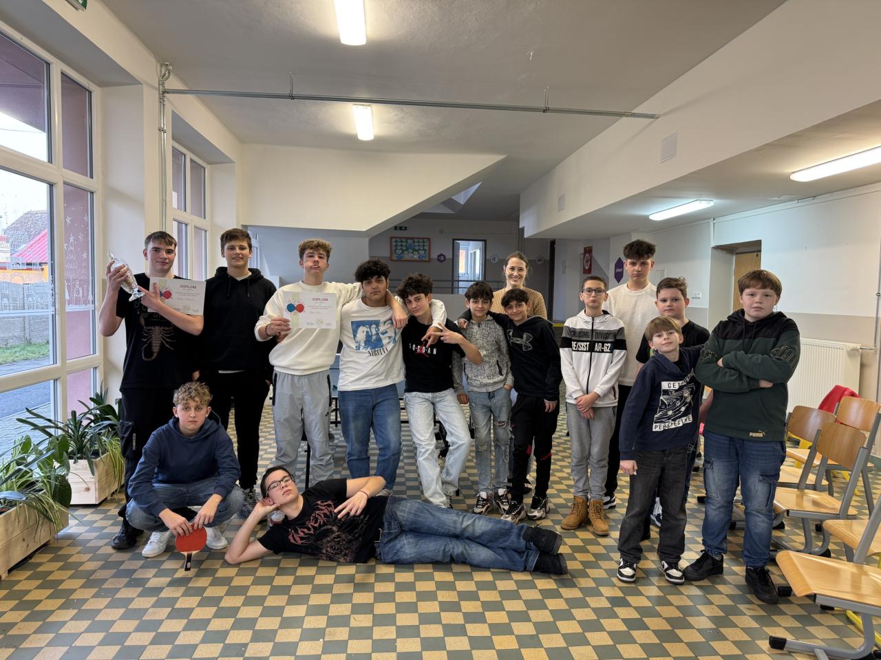Žákovský parlament letos opět uspořádal odpolední vánoční pingpongový turnaj pro žáky 2. stupně. Do hry se zapojilo celkem 15 chlapců… a jedna paní učitelka!